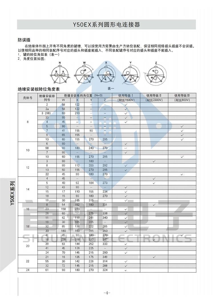 *符合GJB598A-96(MIL-DTL-26482H)I系列 *卡口式快速连接*端接形式为焊接 *插座安装有法兰盘式、电缆式、穿墙式、螺帽拼紧式等多种形式 *五键位具有盲插功能*插头、插座既可装针又可装孔 *等效于JY系列、YB系列、YL系列、MS系列 *广泛应用于航空、航天、航海、电力等电子及电气设备之间的连接 *执行标准:Q/321283LSBO4