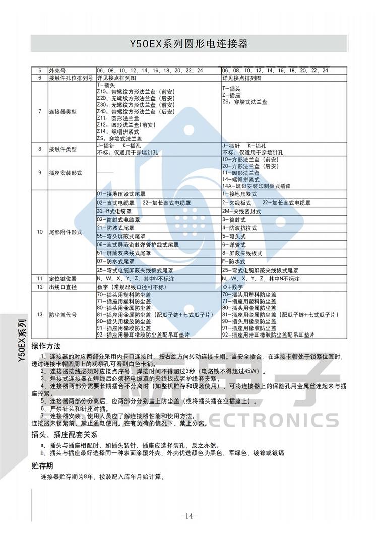 *符合GJB598A-96(MIL-DTL-26482H)I系列 *卡口式快速连接*端接形式为焊接 *插座安装有法兰盘式、电缆式、穿墙式、螺帽拼紧式等多种形式 *五键位具有盲插功能*插头、插座既可装针又可装孔 *等效于JY系列、YB系列、YL系列、MS系列 *广泛应用于航空、航天、航海、电力等电子及电气设备之间的连接 *执行标准:Q/321283LSBO4