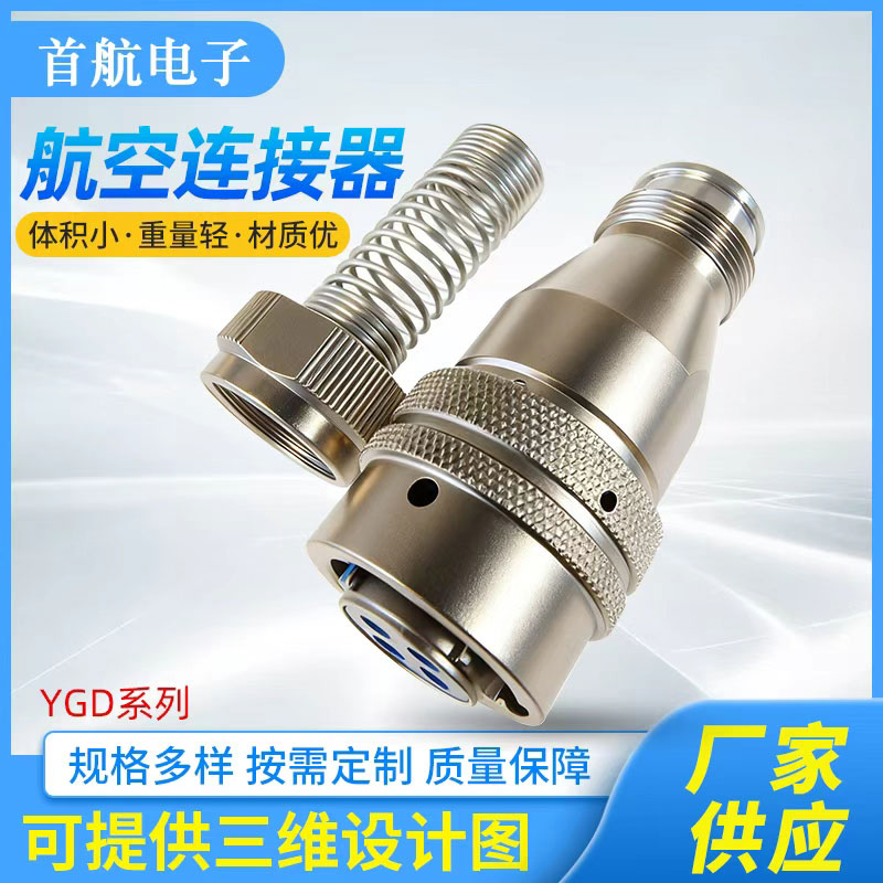产品简介 *该系列产品符合GJB5371-2005《YGD系列圆形电源连接器通用规范》 *连接方式采用卡口连接,接触件端接形式为焊接.插孔接触件为冠簧插孔 *产品具有快速连接和分离,耐环境好,可靠性高等特点 *适用于大电流电源系列的连接 *插头有多种电缆安装形式